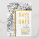 A unique save-the-date invitation card featuring a map of the city of Albuquerque, New Mexico. It features several unique features that make an impression on your future guest, including the names of the bride and groom, the city name, and the words "Save the Date" in gold foil. A gold foil heart symbol pinpoints your location of love in the city. The city map is on the front and reverse sides and can be scaled and moved around. All elements of this invite are unlocked, so have fun being creative and making it fit your style.