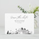Modern Albuquerque black and white save the date invitation. The front showcases a stunning sketch, setting the perfect tone for your wedding day. Add your own photo to the back and customize the text to make it your own. Enter the Zazzle design tool for additional design customizations.