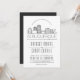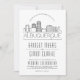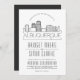 A unique wedding invitation for a marriage taking place in the beautiful city of Albuquerque, New Mexico. This invitation features a stylized illustration of the city's unique skyline with its name underneath. This is followed by your wedding day information in a matching open lined style. On the reverse side of the invitation is a deep grey colour to complement the look and feel. All individual elements of the invite card are unlocked so feel free to change or add any details necessary by using the customization function. You can add a photo to the reverse side and add a black and white filter to it. Also, you can experiment with the many unique thicker paper types and cuts available. Matching RSVP cards, address labels, stickers, tote bags, and more are available. Have fun being creative and making it your own!