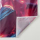 Material: 100% Micro-Woven Polyester—chosen for its ability to hold the intense "neon" saturation of the cyan and red inks without bleeding.