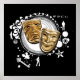 A unique urban grunge digital scrapbook collage design of a set of gold drama masks with embellishments - perfect for the actor or actress looking for something unique for their wardrobe.