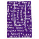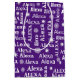 White custom name with white snowflakes on purple.
