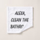 Ce joli ensemble de serviettes en noir et blanc est accentué par le dicton, Alexa, Nettoyer la salle de bain, en caractères gras, ce qui en fait l'accessoire parfait de la salle de bain!