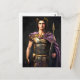 “Alexander the Great” - Conqueror of Empires. A stylized depiction of Alexander the Great. A young man in his late twenties with piercing blue eyes, standing confidently. He has long light brown or dark blonde, wavy hair. He wears a finely crafted bronze cuirass (breastplate) adorned with intricate engravings, possibly featuring mythological scenes or symbols of his divinity. Over his shoulders, he wears a short, flowing purple cloak (chlamys) fastened with a gold brooch at the right shoulder, symbolizing royalty. He holds a hoplon (shield) and a spear in one hand and a stylized depiction of his Kopis (sword) in the other. A golden wreath encircles his head, symbolizing his claim to divine ancestry.