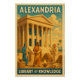 Retro travel poster of Ancient Egypt, featuring the Library of Alexandria in a grand and majestic style
