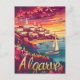 Experience the magical allure of Algarve as the sun dips below the horizon with our travel ad illustration. This enchanting piece captures the coastal beauty, where golden sands meet the gentle embrace of the Atlantic under the warm hues of a picturesque sunset. Picture yourself on the shoreline, feeling the tranquil breeze, and witnessing nature's nightly masterpiece. Embark on a journey to Algarve, where every sunset is a serenade of golden shores and coastal tranquillity.