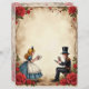 Get lost in a charming literary moment with this delightful paper featuring a vintage Alice in Wonderland scene. It showcases Alice and the Mad Hatter sharing a quiet moment, both engrossed in books, framed by a beautiful border of red roses. With unlimited creative possibilities, this paper is perfect for invitations, scrapbooking, junk journalling, and other personalized projects. Printed in high-quality, full-colour on thin matte paper, it's designed to bring a crisp, professional look to your personal or business mailings. Add personal photos and text for no additional upcharge, making it a versatile and memorable addition to any project.