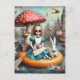 Adorable Alice and the white rabbit enjoying life floating down a river retro encaustic collage art AI generated art
