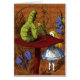 Version moderne d'un livre vintage d'illustration Une chenille fumeur de narguilé est assise sur un champignon et parle à Alice.