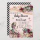 Vintage Alice au pays des merveilles invitations douche bébé avec vintage Alice au pays des merveilles illustrations sur un arrière - plan chèque vintage rose et or noir et blanc. Ces belles invitations vintages Alice in Wonderland à thé sont facilement customisées pour votre événement en ajoutant simplement vos détails.