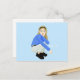 Send a postcard with cute illustration of modern version of Alice in Wonderland. Present-day Alice exudes more mischievous image than the original one in boyish outfit and still look cute in her original image colour scheme.