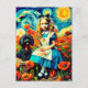 This lomographic photo features Alice from "Alice in Wonderland" accompanied by a little black dog, set in the whimsical Van Gogh-style poppy field. The image captures the vivid, slightly out-of-focus look of lomography combined with the swirling patterns and colourful, dreamy ambiance characteristic of Van Gogh's style. AI generated art combining themes of Alice in Wonderland with the Wizard of Oz