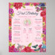 Beautiful vintage Alice in Wonderland theme first birthday baby milestone poster. Perfect for a way to celebrate this special milestone and special moment. Bold colourful florals are arranged in a lovely design with the milestones, birth stats, and other details beautifully arranged. Our floral illustrations are illustrated by us and arranged to produce this beautiful design. Design and floral artwork by Moodthology Papery