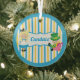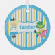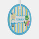 Cute Alice in Wonderland Christmas ornament gift. Little girl Alice in her blue dress and the Mad Hatter sit on a pretty blue yellow stripes. Customize this whimsical bookworm present with your own text for your favourite librarian.