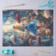 A whimsical decoupage design featuring Alice walking along a woodland path lined with red cap mushrooms, capturing the magical charm of Wonderland.