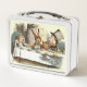 This is a digitally enhanced print of a vintage 1890 John Tenniel illustration of the tea party with Alice, mouse, rabbit, and the Mad Hatter from Alice In Wonderland.