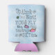 The quote on this whimsical can cooler is from a Lewis Carroll poem in "Alice in Wonderland." At the tea party, the Mad Hatter recites, Up above the world you fly / Like a tea-tray in the sky. This pretty typography design has a teacup, teapot and tea bag, complete with swirling steam. It all floats over a light, cloudy blue sky.