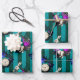 This bold, vibrant Alice in Wonderland inspired design has the white rabbit, clocks, and roses on a teal and dark green vertical stripes background. Perfect for decoupage, crafts, or gift wrapping.