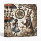 Step into a whimsical wonderland with this enchanting Alice in Wonderland illustration. The Victorian-styled White Rabbit holds his teacup with proper poise, while Alice in her iconic blue dress dreams of adventure. Mystical mushrooms dot the scene, and a fascinating clockwork tree bears a mysterious pocket watch - time is always of the essence in Wonderland! Perfect for nurseries, children's rooms, or any space needing a touch of magical charm. This delightful artwork captures the beloved story's essence with its detailed steampunk-inspired elements and dreamy atmosphere.