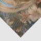 Protective Blue Chinoiserie Alice Flamingo Tissue Paper | Nursery Craft Décor. This gentle blue chinoiserie tissue paper design features a thoughtful moment between Alice and a pink flamingo, inspired by the classic Wonderland tale. Alice stands in quiet defiance, shielding the flamingo from its usual croquet fate, her gingham dress and soft expression set against a stylized floral backdrop. A calm yet story-rich image for nursery crafts, fairy tale bedroom décor, or for covering furniture during creative upcycling projects.