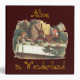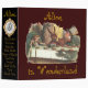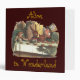 Covered with various framed and unframed pictures of Alice, the Mad Hatter, the Dodo, and the White Rabbit as well as curving script giving names of characters and books. Fun for the child and adult fan of Alice both.