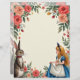 Entrez dans un monde fantastique avec ce papier délicieux avec Alice et le lapin blanc. Il présente une charmante bordure fleurie de roses rouges et de feuilles verts encadrant un espace central, avec Alice et le lapin blanc en bas. Avec des possibilités créatives illimitées, cet article est parfait pour le scrapbooking, la journalisation des déchets, l'artisanat et d'autres projets personnalisés. Imprimé en couleur haute qualité sur papier mat fin, il est conçu pour apporter un look professionnel et net à vos envois personnels ou professionnels. Ajoutez des photos personnelles et du texte sans supplément, ce qui en fait un ajout polyvalent et mémorable à tout projet.