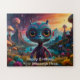 Embark on an intergalactic journey with this adorable blue alien in a colorful mushroom forest! Perfect for kids, this whimsical puzzle transports you to a dreamy world filled with vibrant, swirling mushrooms and playful plants. With the alien's curious wide eyes and quirky, rainbow-like patterns, children will enjoy piecing together this imaginative scene full of magic and mystery. Ideal for sparking creativity and a sense of wonder!