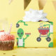 Green Martian type alien grilling food on the barbecue to customize, personalize by changing to your name