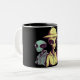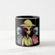 The design showcases two aliens standing side by side — one cool and casual in a hoodie, and the other rocking a wide-brimmed hat, exuding intergalactic swagger. The black background enhances the bold colors, making the green and yellow figures stand out vividly. It’s a modern, artistic, and slightly quirky take on classic alien imagery that brings fun energy to your kitchen or workspace. This mug turns every drink into a conversation starter, perfect for anyone who likes to mix creativity and curiosity.