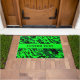 Camouflage doormat in bright green with editable text field, customize with your address number, company name, etc.