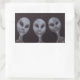 A colour pencil drawing of three Alien Grey ETs against a starry black sky adorns these stickers!
