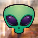 Cartoon alien head illustration with big dark eyes. alien, cartoon, clipart, eye, green, humour, icon, martian, monster, space, vector, cosmic, outer, scifi, sci fi, science fiction