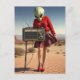 Alien in Red Plaid Skirt With Radio in the Desert Postcard