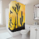 Desert Alien or Life Form Kokopelli Shower Curtain. Native American Southwestern Style Abstract Kokopelli playing flute in a desert scene of black and white. Cave Petroglyphs canvas. Change background colour combination to match your bathroom decor. Kokopelli is a fertility deity, a humpbacked flute player, win Native American cultures. Attributed to ancient aliens or tribal art and inspired by cave and rock drawings. Great gift idea for those that love southwestern decor, and the ancient history of the planet. Black and white silhouette koko and cactus landscape.