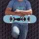 Alien skateboards. Light blue background. Makes an "out of this world" gift!