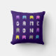 Purple, pink, yellow, grey and blue alien monster pixelated block graphic characters on dark purple cushion pillow. Fun crazy block graphic 3d crazy monsters aliens video gaming themed girls pillow. Other matching items are available. Designed by www.mylittleeden.com on Zazzle.
