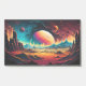 Alien planet landscape Psychedelic Space banner template, background Horizontal illustration of the future with mountains, planets, trees, moon Surrealist escapism