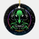 Alien Playing Video Games with Star Background Ceramic Ornament