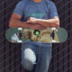 Alien Robot Skull from the Future in Chrome + Bone Skateboard