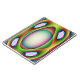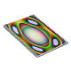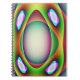 This awesome notebook.features a multicoloured pattern of bright psychedelic colours surrounding a central egg shaped structure. It resembles a fantasy of an alien spaceship ready to abduct an earthling.