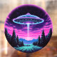 Step into a world of otherworldly wonder with our mesmerizing Alien Spaceship Vaporwave Aesthetic Art Print. Against the backdrop of a starlit sky, this captivating scene depicts an alien spaceship hovering over a serene night field, casting an ethereal glow that bathes the surroundings in a surreal light.