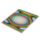 This awesome tile features .a multicoloured pattern of bright psychedelic colours surrounding a central egg shaped structure. It resembles a fantasy of an alien spaceship ready to abduct an earthling.