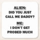 For the sarcasm lover in all of us. Check out this witty “Alien: Did You Just Call Me Daddy? Me: I Don’t Get Probed Much” design on apparel and gifts.