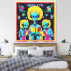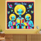 This is a pop art image of a trio of alien singers with their stave notebooks in a jamming session.