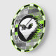 ATTENTION EARTHLINGS! Cool retro TV testcard inspired design featuring a stylised alien face and extra-terrestrial interference in shades of black, white, grey and green. A customizable design for you to personalise with your own text, images and ideas. An original digital art image created by Jess Perry.