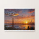 This unusual jigsaw puzzle features a Sci-Fi fantasy scene of a squadron of extraterrestrial UFOs cruising across the San Francisco Bay and the Golden Gate Bridge highlighted by a beautiful sunset in the background.