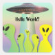 Greetings Earthlings! Whimsical aliens come to visit you from deep space in their flying saucer. This colourful design will look great on notebooks, laptops, water bottles and more. You can customize the text with your own message from these friendly space farers.