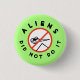 This keychain has a prohibitory traffic sign with a cartoonish flying saucer and a stylized pyramid on a white background, crossed by a red "forbidden" line. The sentence "aliens did not do it" in capital black letters runs all around the sign on a light green background.