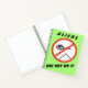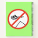 This bright colourful notebook has a prohibitory traffic sign with a cartoonish flying saucer and a stylized pyramid on a white background, crossed by a red "forbidden" line. To reiterate the messare, there is also the text "Aliens did not do it" in capital black letters on a light fluo green background.
