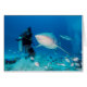 Piqué de alimentation de requin de Taureau au Playa del Carmen. Les conducteurs portent un costume de chainmail pour la protection.